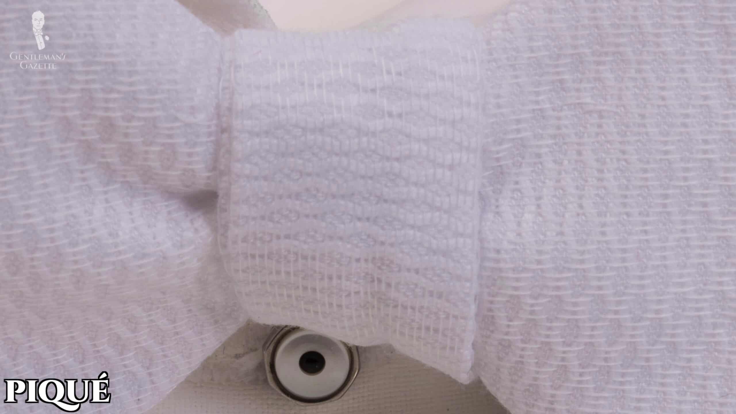 Yes, that’s right. You might be surprised to hear that cotton is the crème de la crème when it comes to evening bow ties, but not just any kind of cotton will do. When it comes to White Tie, specifically, you’ll want to look for finely-woven cotton in a specific weave called pique or also “marcella” in the UK.
