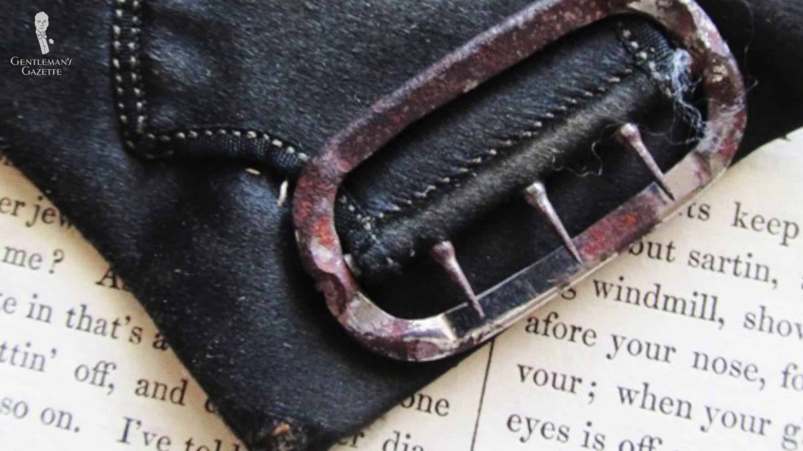As you can see, these styles of buckles that essentially used sharp claws to pierce the fabric weren’t entirely health and safety friendly. So, in the late-Victorian Era, you could also see models with a hook-and-loop closure and early elastic.