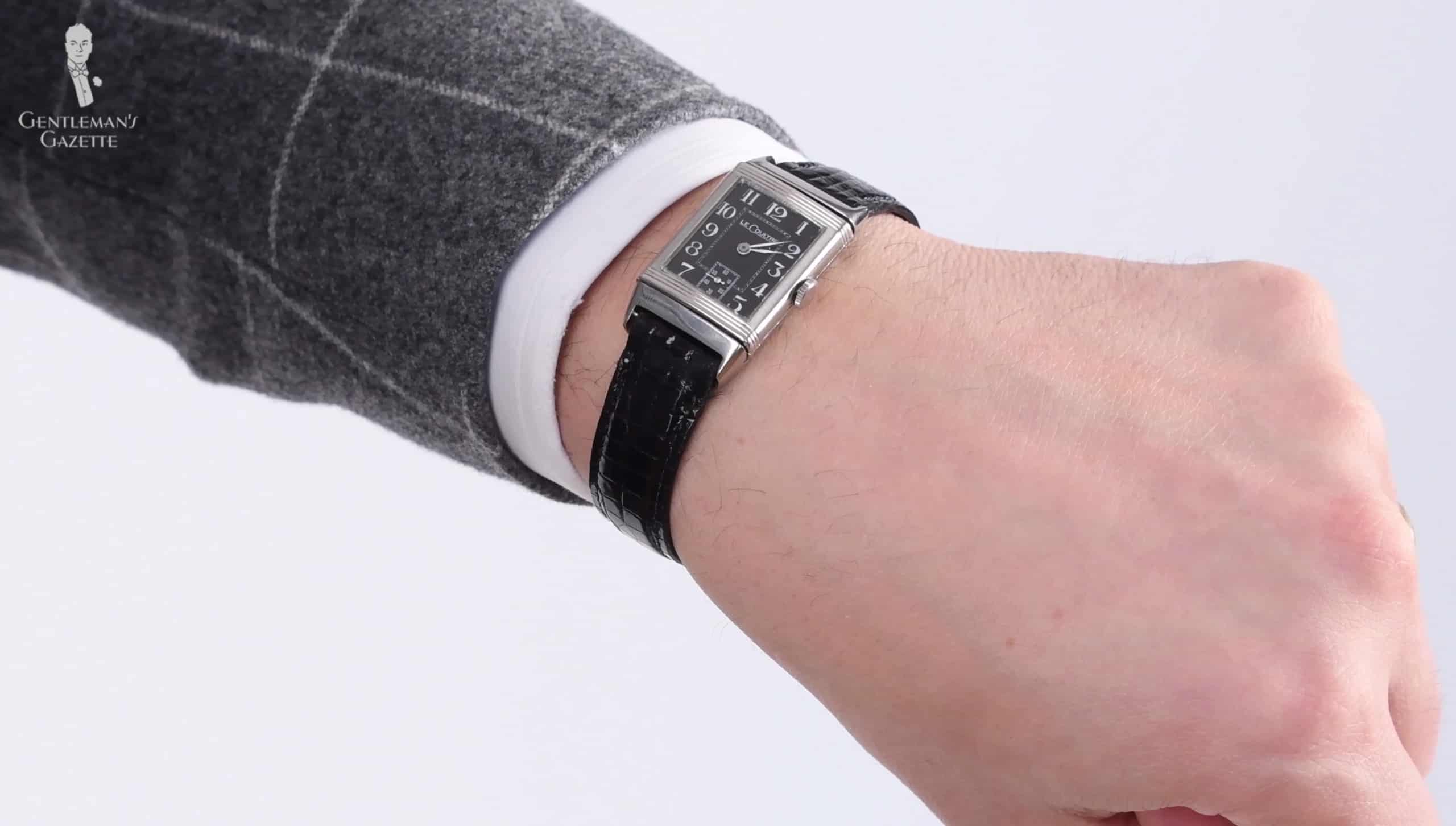 Echoing our advice for belts, you could go with a simple leather band here, or if you’d prefer to wear a metal watchband, going with something lighter and finer would be a better bet.