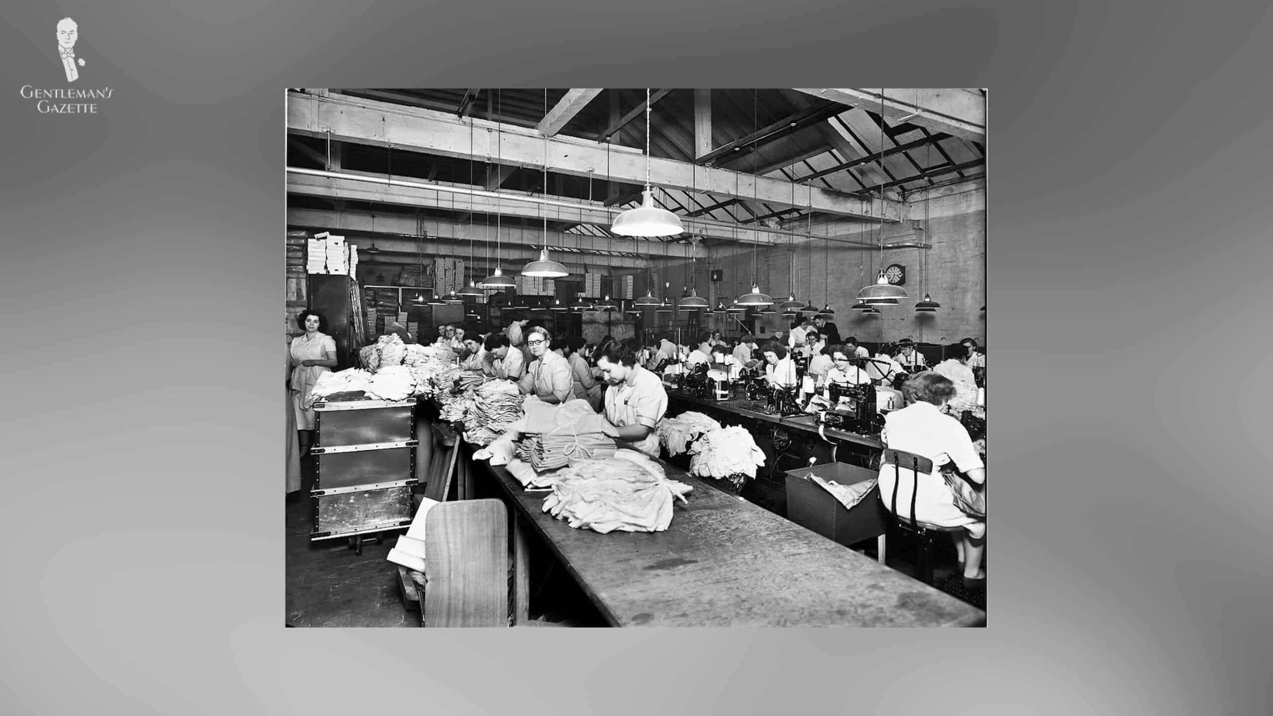 In any case, this is where the Sunspel factory has remained since. Like most factories during the Second World War, Sunspel’s efforts were redirected to support the war effort and make utility clothing. And even though its offices suffered a direct hit during the blitz, the company continued onward and came out on the other side of the war. It was then able to refocus on everyday luxury clothing.