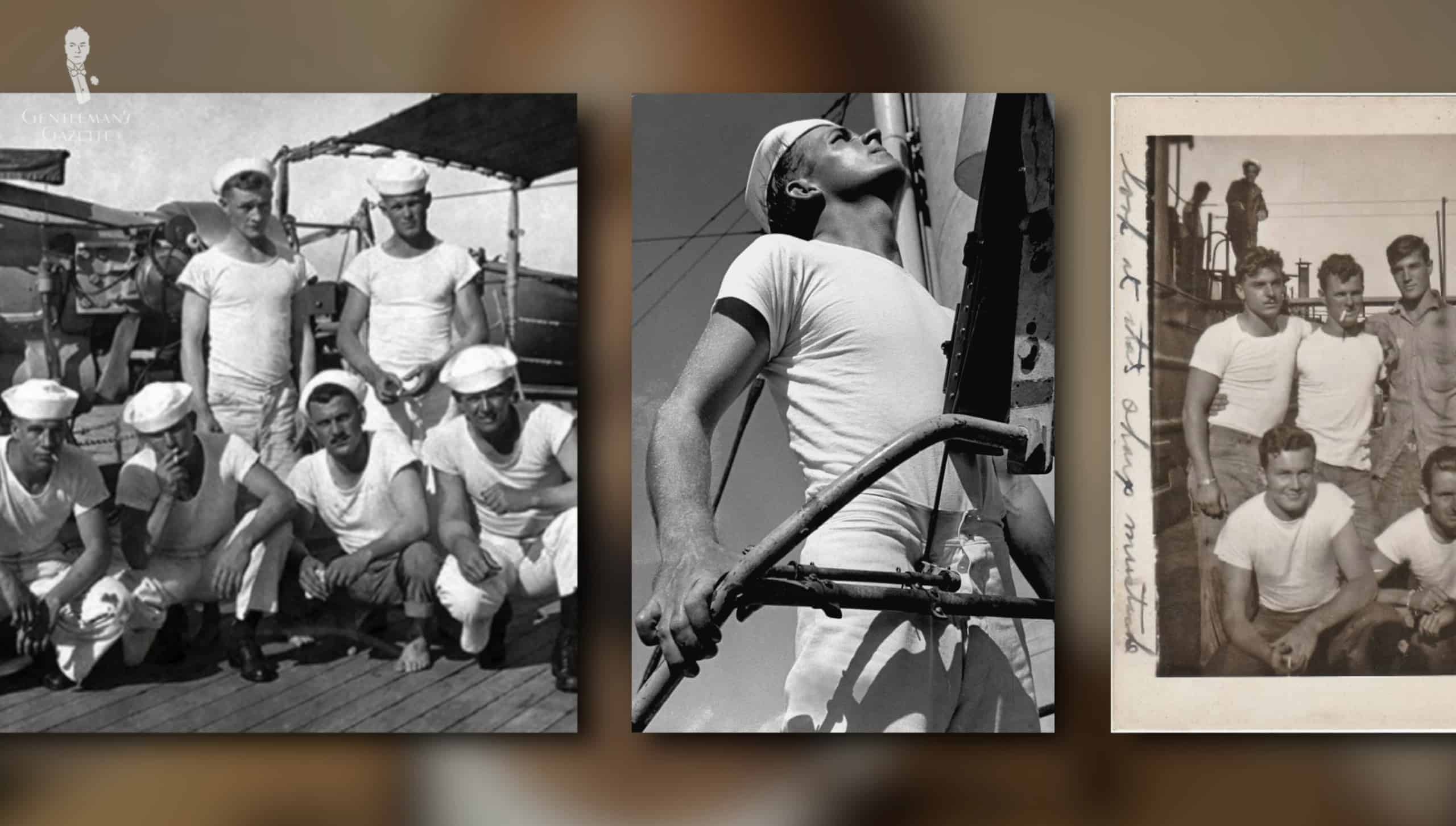 The T-shirt will continue on as an undershirt; first being introduced to the US Navy in 1913. They were made of white cotton and had a crew neck. They also sported short sleeves. Fun fact: the term “crew neck” literally comes from the Navy as the rounded neck was actually synonymous with the sailors.