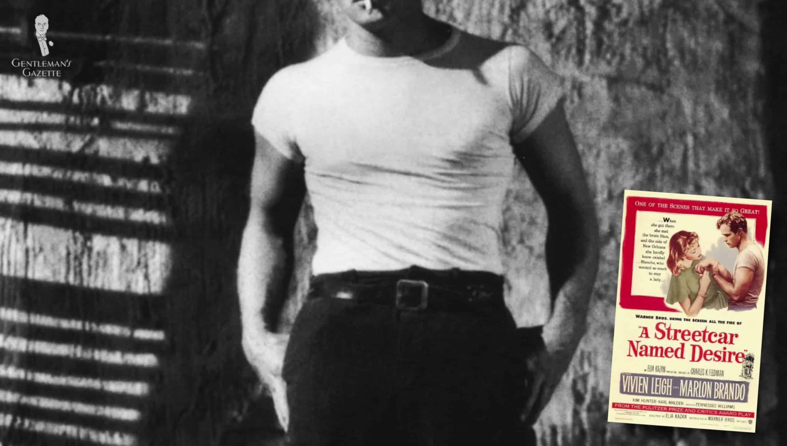 It’s with the 1951 film A Streetcar Named Desire and Marlon Brando that the T-shirt became an item of clothing on its own. As the character of Stanley Kowalski, Marlon Brando wears the T-shirt to show the character’s crude and unrefined manner.
