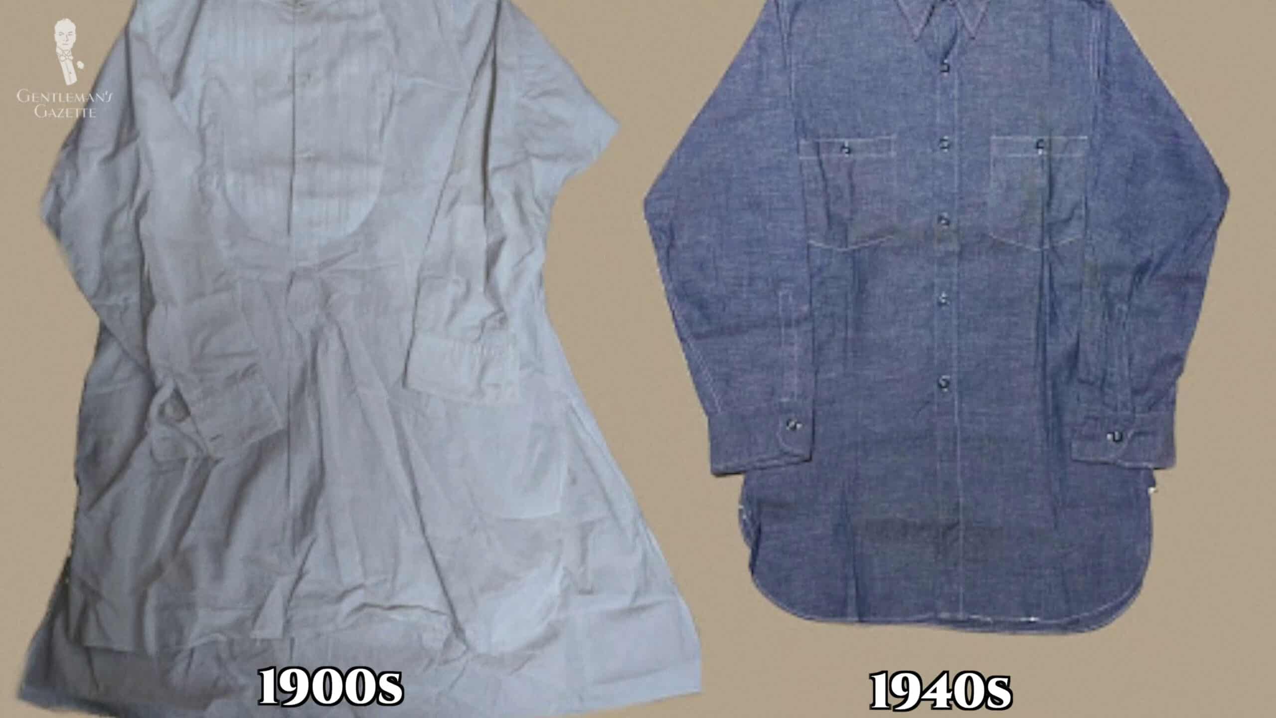 The rationing of fabric actually had a great impact on the design of dress shirts as we know them today. If you look at the 1900s, dress shirts were cut very roomy and much longer, sometimes reaching all the way down to your knee.