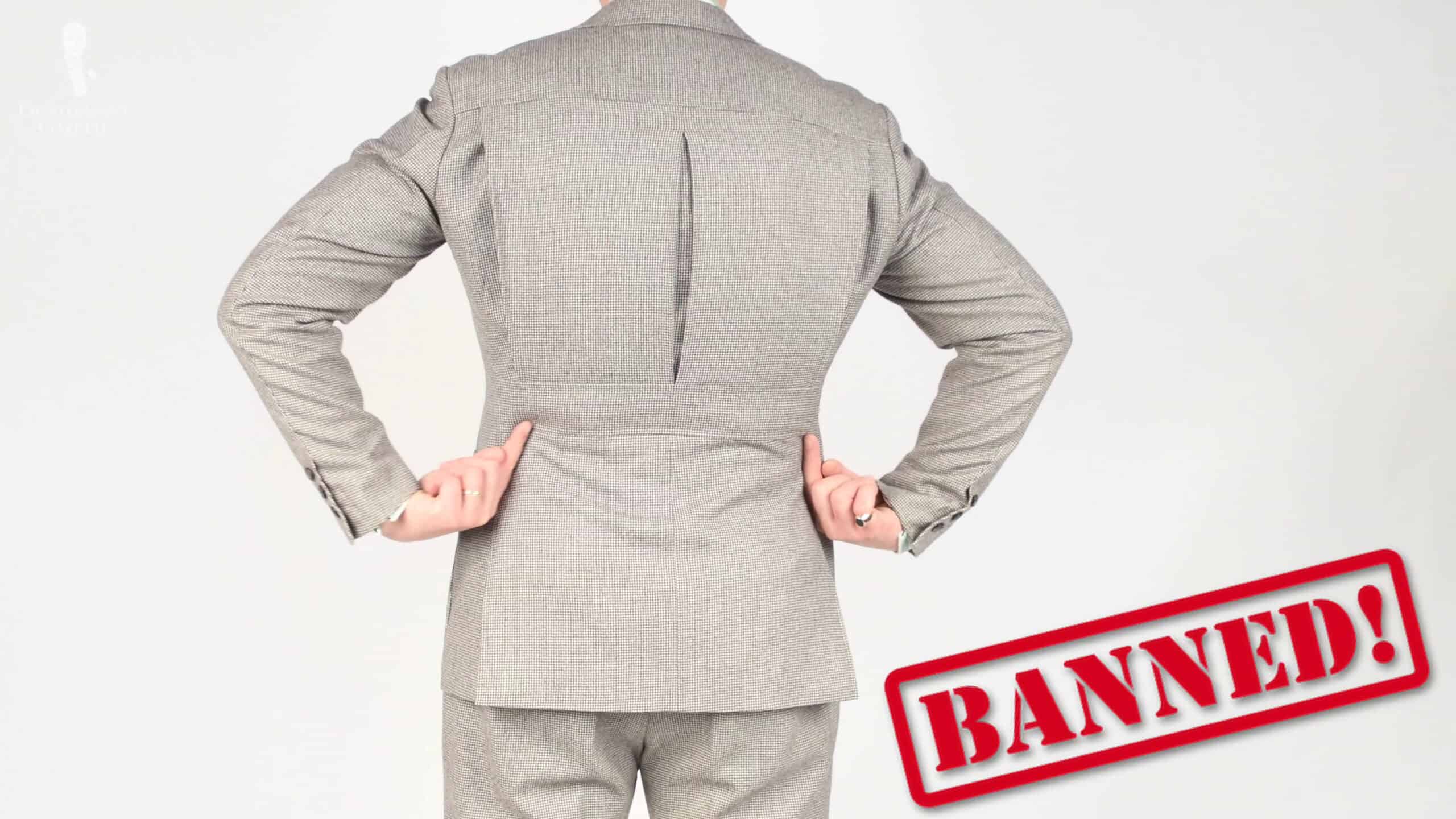 In the UK, things were a bit stricter. Starting in 1941, belted backs, pleated backs, half-belt bags, zips, and double-breasted jackets were altogether banned. Suits were limited to having three pockets and they needed moderately sized lapel widths. So, you couldn’t have these typically wide, ’30s-style lapels.